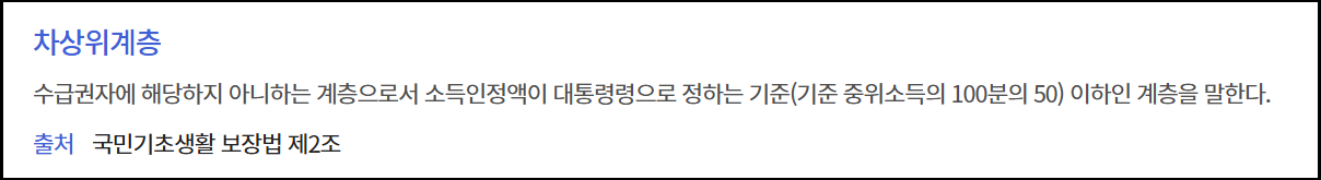 차상위계층이란 '기초생활보장 수급자 바로 위 계층'을 뜻합니다. 즉, 생계·의료급여 등의 기초생활보장 수급자 기준은 초과했지만 여전히 생계가 어려운 저소득 가구를 의미합니다.